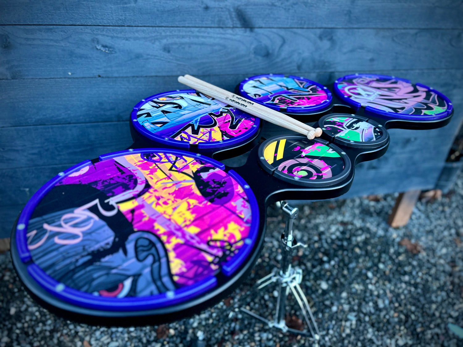 Practice in style and at a muted volume! Available individually or in packs! We have every size cymbal, tom, bass drum and snare available! See what design fits your kit the best!