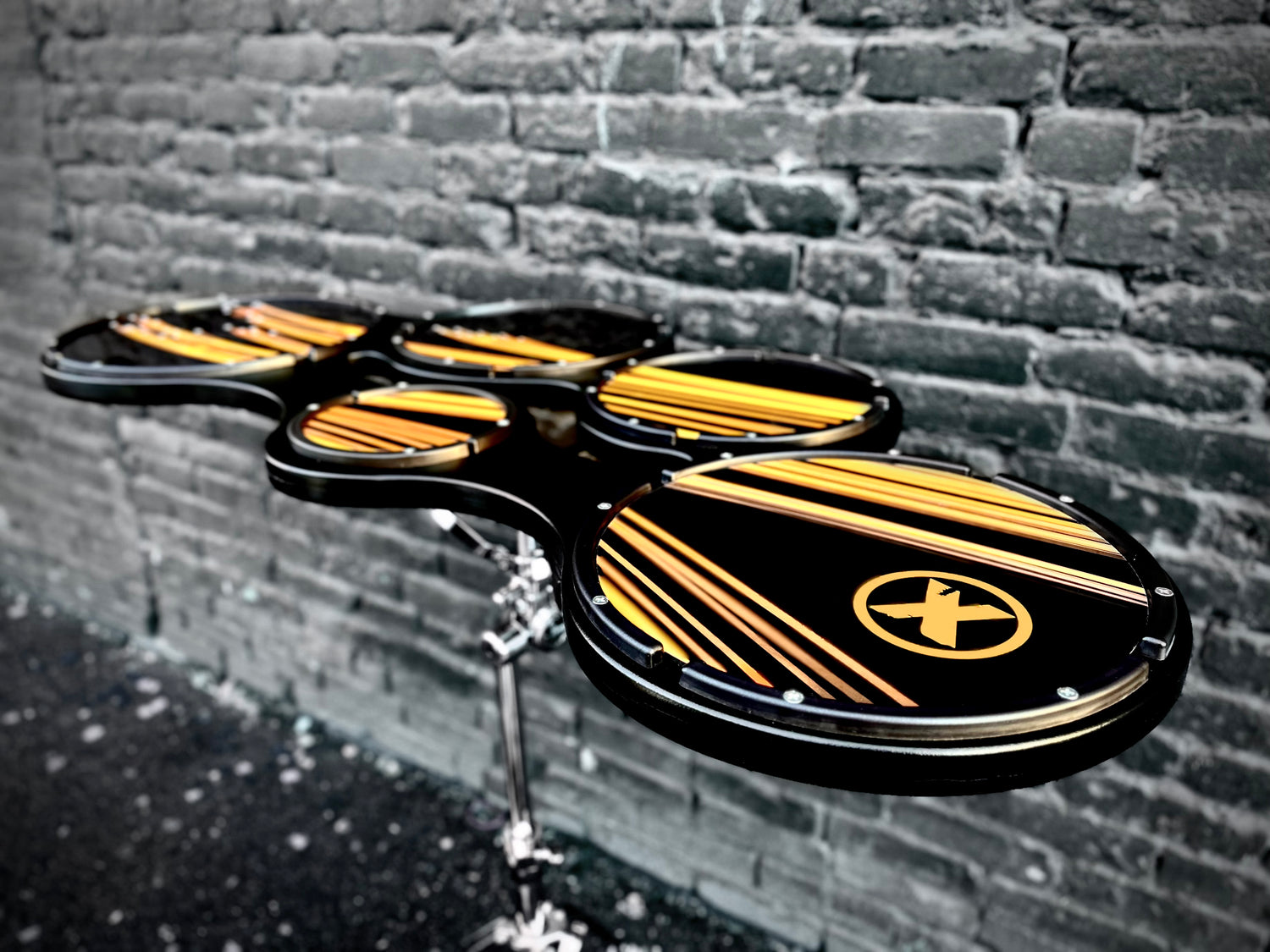 Our Premium Drum Pad available with or without snare. We’ve switched to super tough polycarbonate rims and surrounded the wood base to make a virtually indestructible pad. A solid go to for any professional drummer and available in a variety of styles!