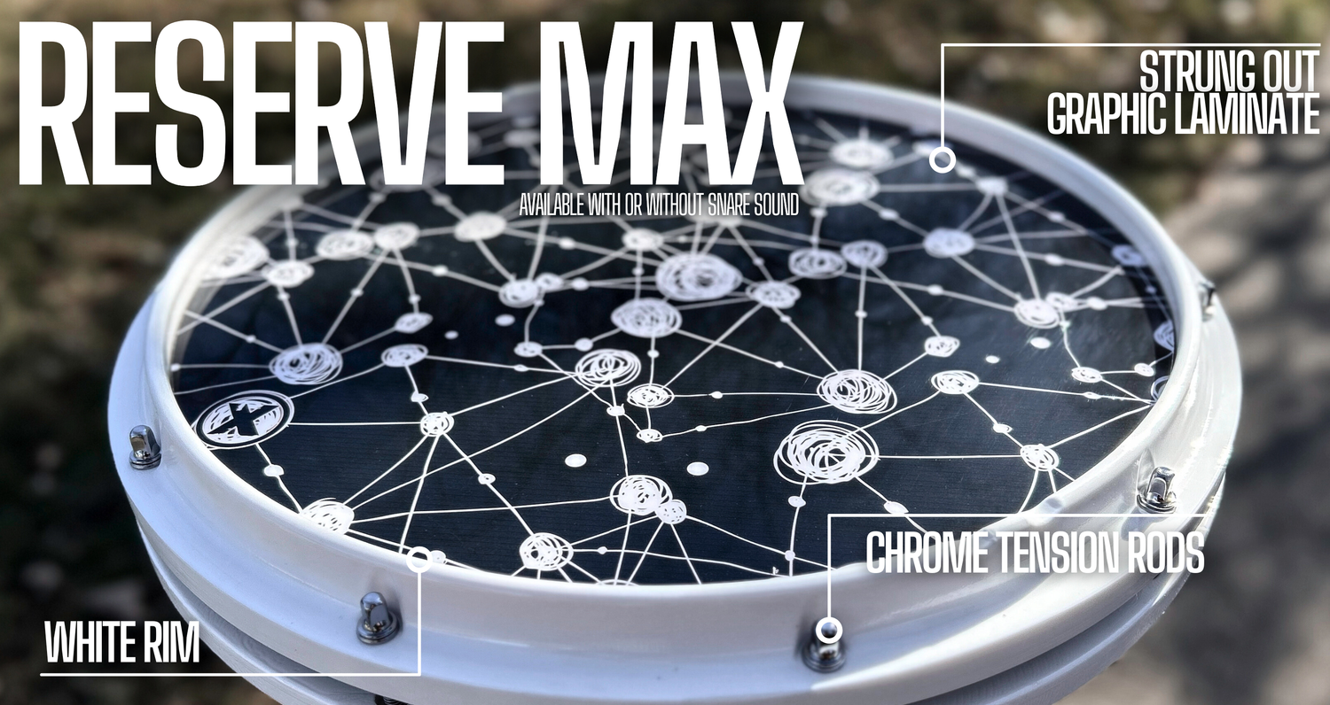 Our original style Corps Pad available with snare or without snare! We’ve increased the overall size for better playing form and the snare bed size for a brighter, fuller sound. This is a compact and lightweight alternative to the Reserve Max Series Pads and available in a variety of carbon fiber and graphic laminates!