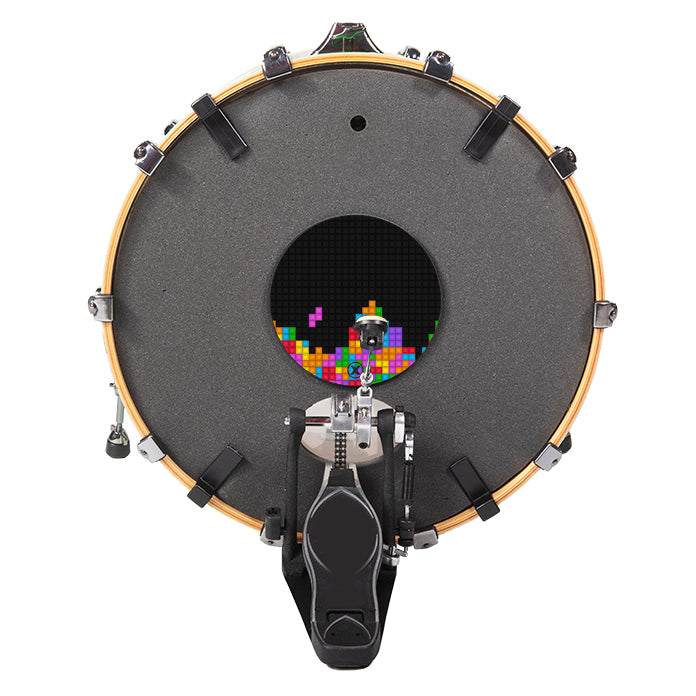 Xymox has been making Drum Set Mutes for over 20 years. In our early days as an OEM manufacturer, we made Drum Set Mutes and Pads for Vic Firth, Promark, Yamaha, Innovative Percussion and more. Our graphic Bass Drum Mutes have a 3/4” thick foam base and a laminated graphic sponge rubber using actual drumhead material. This combo gives the support needed to adequately mute your bass drum while still allowing for some nice bottom end. The Bass Drum Mute is held in place with 4 slider clips made of molded plastic so it will not harm or scratch your hoop and shell.