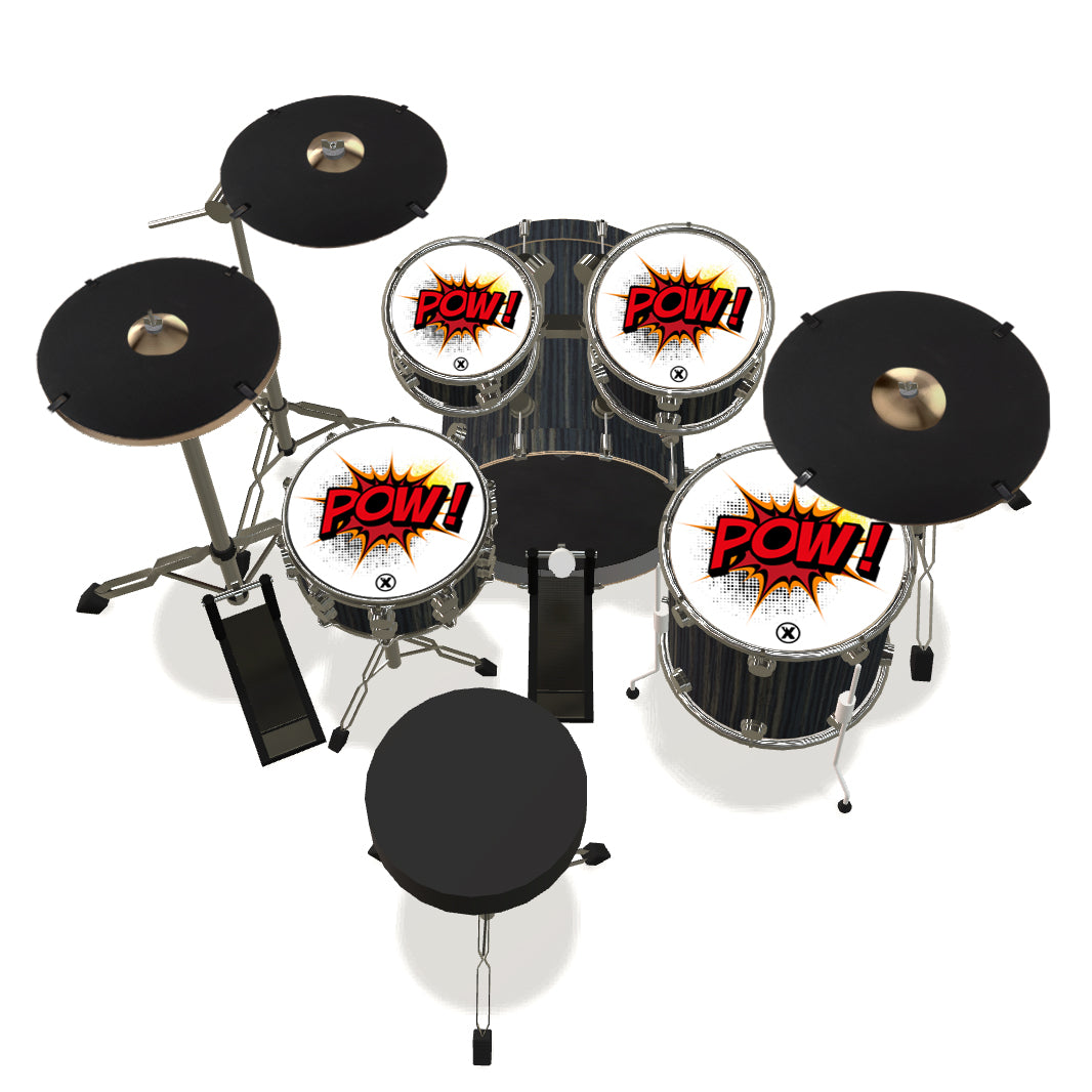 Xymox has been making Drum Set Mutes for over 20 years. In our early days as an OEM manufacturer, we made Drum Set Mutes and Drum Pads for Vic Firth, Promark (remember the blue rubber?), Yamaha, Innovative Percussion and more. We’ve now improved upon this product with graphic laminated mutes. It’s a fresh take on an existing product and creates a visual palette to match the design and color of your drums. The laminated sponge also gives a better attack and tone sound while still muting the drum. You can also flip the disc over and play directly on the sponge side for a traditional old-school style muted session. All kits come standard with our patented Low Profile Snare Pad. The perfect snare sound pop to make practicing both effective and fun! The Low Profile Snare Pad is also perfect to take anywhere and can also fit comfortably in any backpack for a quick jam. While the “Drum Set Mute Packs” category is a great start for 5-piece sets, the “Individual Drum Set Mutes” category features every size drum and cymbal imaginable to complete your set. Looking to put your own image/photo/graphic on the Drum Set Mutes? Go to the first page and see the “Your Image Here” option for instructions.